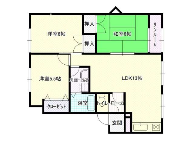 | 詳細間取 | 3LDK (洋6帖×1、洋5.5帖×1、和6帖×1、LDK12.8帖) | ||